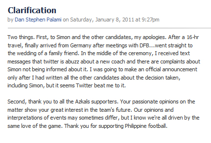 Everyone's cool, coach and Dan Palami will talk, etc. It's so cute how Coach still kept telling people to support the Azkals, even if he isn't coaching them.